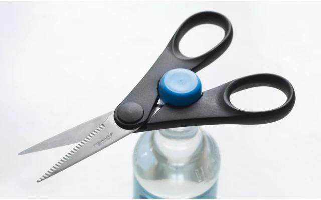 Kräftige Schere mit gezahnter unterer Klinge für ein besonders leichtes Schneiden.
