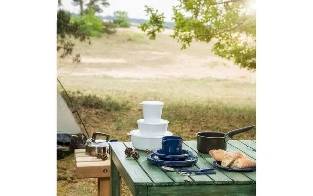 Kleiner Becher in Ocean blue (blau) mit einem Inhalt von 200 ml aus der Basic (Freizeit)Geschirr Serie von Mepal. Dieses Campingservice besteht schon länger als 30 Jahre und ist inzwischen ein echter Klassiker geworden. Dieser blaue Becher ist aus kratzfestem Melamin hergestellt und eignet sich für drinnen und draußen. Stapelbar, leichtgewichtig und sehr praktisch: nach Gebrauch kann der Becher Basic 234 ganz einfach in den Geschirrspüler!
