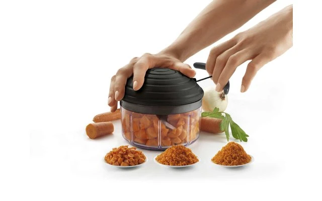 Der Rotomac verändert die Art und Weise des traditionellen Hackens, dank seiner patentierten, beweglichen Schneideklingen. Zug um Zug verarbeiten Sie Ihre Zutaten von groß bis sehr fein.