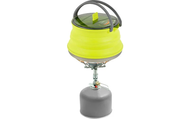 Zwei X-Mugs und der X-Brew Kaffeefilter (separat erhältlich) nisten ordentlich im Inneren, so dass dein morgendliches Brühset kleiner als eine Frisbee verstaut werden kann. Der Kessel besteht aus einem harteloxierten Aluminiumboden mit zusammenklappbaren Seitenwänden aus Silikon und Griffen aus glasfaserverstärktem Nylon 66.