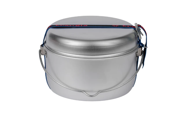 Campingset mit Wasserkocher, Bratpfanne und Zubehör, zu verwenden über jeder Wärmequelle.