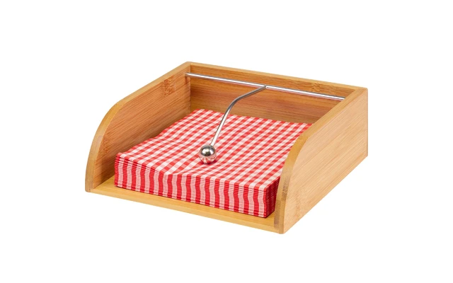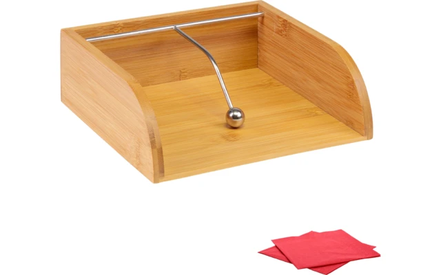 Bambus-Serviettenständer mit Windschutz: Metall-Kugel als Gewicht zum Fixieren der Papierservietten, für Gastronomie/Zuhause, zum Aufbewahren von Lunch-Servietten in Standardgröße, Format: 33 x 33 cm – 1/4 Falz.